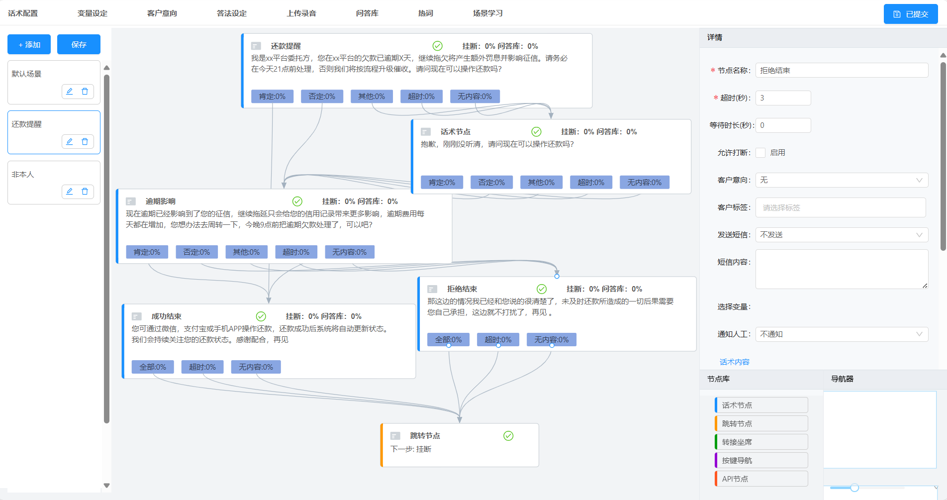 用户分层:根据债务人画像(如逾期天数、历史行为)匹配话术。