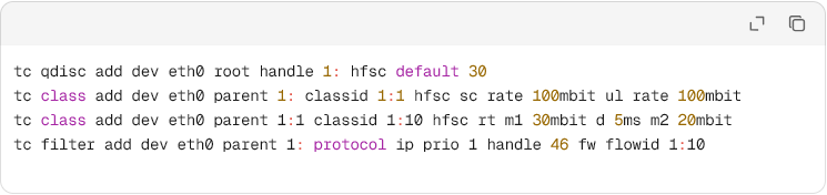 上行是瓶颈时,在出口做 egress shaping,把 VoIP 预留 30 % 带宽。